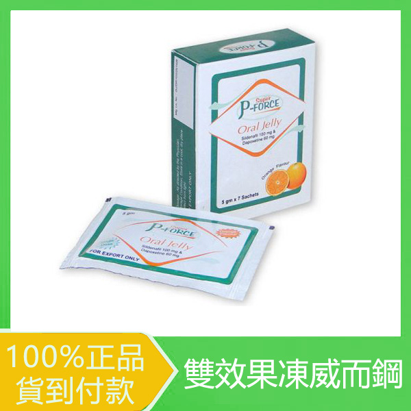 果凍威而鋼Super P-Force Oral Jelly,又稱液體水果威而鋼雙效,印度液體威而鋼雙效是壹種有效治療勃起功能障礙和早洩的藥物。Super P-Force Oral Jelly果凍威而鋼的主要活性成分是西地那非100mg和達泊西丁60mg,能增加陰莖的血液循環,刺激男性的自然性喚起與增長勃起與射精耐久時間,可以幫助使用者獲取長時間的勃起和強大的性高潮。